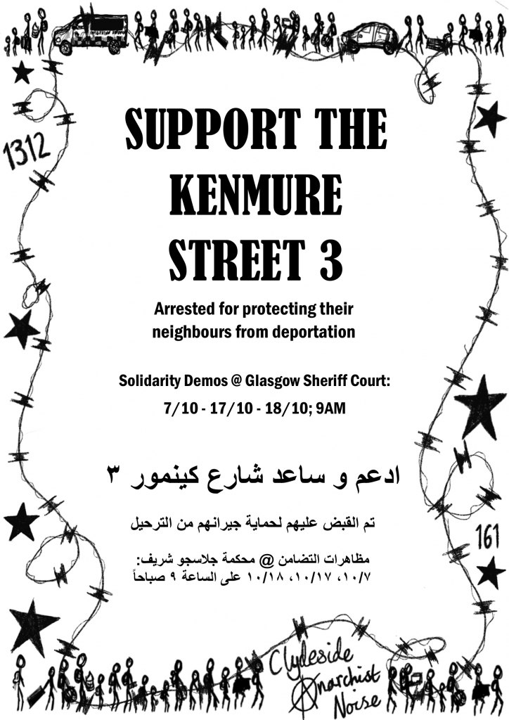 In May 2021 an immigration raid attempting to kidnap two residents was stopped by locals after an eight-hour stand-off with the Home Office goons and their protectors in Police Scotland. It was a huge victory, one of the most significant moments within all anti-border struggles on these isles in decades. For one short day, in one small part of Glasgow, we actually made reality the promise of “No borders, NNations, Stop Deportations”. However, during the course of the day, three people were arrested and are now potentially facing time in prison, isolated from their community for the crime of defending it against the violence of the state.