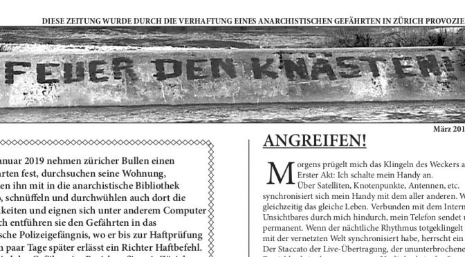 DIESE ZEITUNG WURDE DURCH DIE VERHAFTUNG EINES ANARCHISTISCHEN GEFÄHRTEN IN ZURICH PROVOZIERT