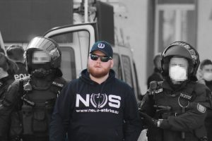 Arthur und Alex beteiligen sich mit mindestens zwei anderen NSP Stuttgart Mitgliedern an den Aufmärschen der Kleinstpartei in Gera am 26.03.22 und Erfurt am 01.05.22. Alle Personen, die beim Aufmarsch in Gera anwesend waren sind Polizeibekannt. Denn dieser Aufmarsch wurde wegen uniformierten Auftreten von der Polizei aufgelöst und alle 81 anwesenden Nazis wurden Erkennungsdienstlich behandelt. Das trifft auf drei Mitglieder der NSP Stuttgart, darunter Arthur und eine Person die sich „Simon“ nennt zu.