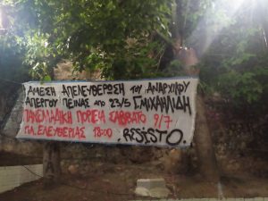 Καλούμε στις 24/6, στην διεθνή ημέρα αλληλεγγύης στον αναρχικό απεργό πείνας από 23/5 Γ. Μιχαηλίδη, μικροφωνική συγκέντρωση στην Πλατεία Ελευθερίας στην Λαμία στις 19:30