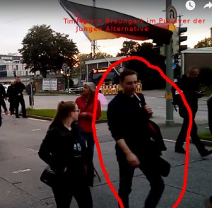 An diesem Datum nahmen auch der Vorsitzende der Jungen Alternative (JA) Bielefeld, Florian Rust sowie das JA-Mitglied Tim Marvin Braungart teil. Auch Florian Schürfeld, aktiv bei der Identitären Bewegung und der rechtsnationalistischen Burschenschaft Normannia Nibelungen, nahm an der Demo teil (siehe Foto).