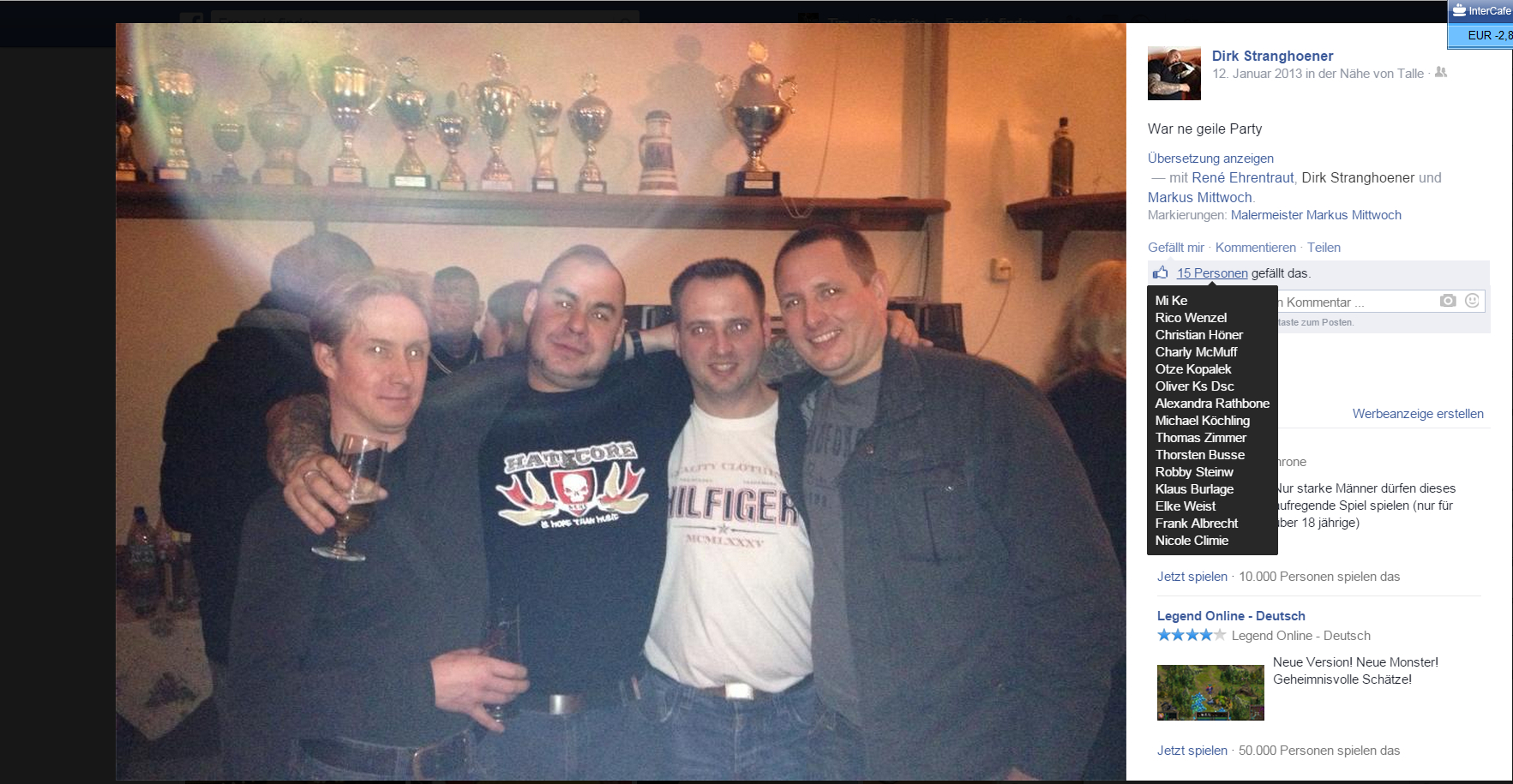 Wanderfotos auf facebook zeigen Mittwoch zusammen mit dem Neonazi Dirk Stranghöner aus dem Kreis Lippe. Stranghöner ist seit mehr als 25 Jahren als Neonazi bekannt und aktiv. Er war unter anderem Teil der neonazistischen Kameradschaft Bielefeld sowie der Road Crew OWL. Wenn Stranghöner mit anderen bekannten Neonazis wie Marcus Winter (Mindener Jungs), Michael Sundermann und Jan Weißberg zum Vatertagsausflug loszieht, gefällt das Markus Mittwoch auf facebook.