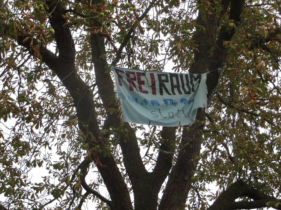 ” Was von der “Wagengruppe Schlagloch” blieb: die “Investorenträume” haben sich in Luft aufgelöst, die “Freiräume” sind geblieben – zumindest auf dem Banner