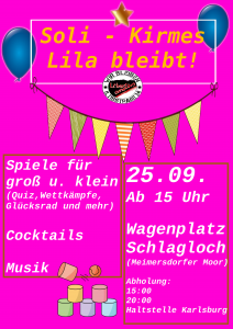 In Zeiten, in denen die Klimaschutzstadt Kiel eine Vorreiterrolle einnehmen will, in denen Wohnraum zu teurem Luxus geworden ist und unkommerzielle Räume für Kultur- und zwischenmenschliche Begegnung bedroht sind (obwohl diese alltägliche Solidarität aufbauen, wie z.B. das Li(e)ber Anders zeigt.), müssen wir, die Wagengruppe Schlagloch, welche bezahlbares Wohnen, Klimaschutz und kulturelles sowie solidarisches miteinander verbindet, in Unsicherheit leben.