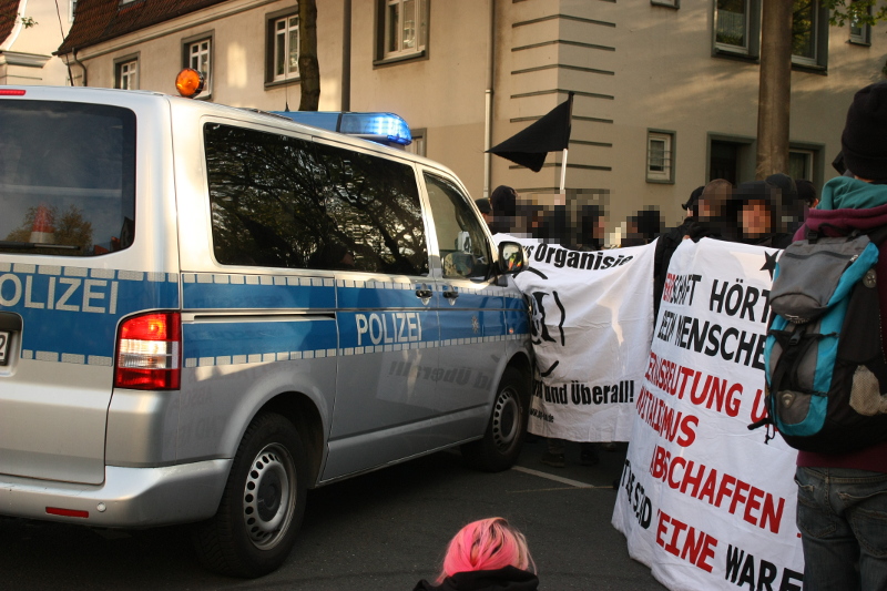Aus vielen Teilen NRWs waren Genoss*innen angereist: Ruhrgebiet, Krefeld, Köln, Bielefeld, Sauerland, Münsterland, Aachen und weiteren. Dies und weitere Antiautoritären Demonstrationen in Bonn, Köln & Wuppertal zeigen deutlich, dass die Anarchistische Bewegung in NRW eine Kraft darstellt von der in Zukunft einiges zu erwarten ist.