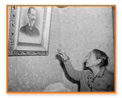 (Lucy vor einem Portrait von Albert Parsons)Der Konflikt ging so weit, dass Emma Goldmann Lucy Parsons nur noch „als die Witwe unseres Märtyrers Albert Parsons“ bezeichnete, die „mit seinem Blut um öffentliche Anerkennung buhlt“, ja, in späteren Schriften zu Albert Parsons sogar nur noch von einer „jungen Mulattin“ sprach.