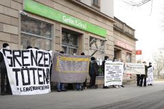 Letzte Station der mit Bannern bestückten Demonstration war das Grünen-Büro am Bahnhof Merseburg. Denn auch wenn sich die Grünen gerne sozial und gerecht geben, so sind auch sie mitverantwortlich für die Abschiebungen. Sie tragen die Abschiebepraxis mit, um politisch koalieren zu können. Diese Mitschuld klagte die Demonstration an. Nach einer knappen halben Stunde löste sich die spontane Versammlung wieder auf. Zurück blieben Plakate und Texte an den Fensterscheiben der Verantwortlichen.